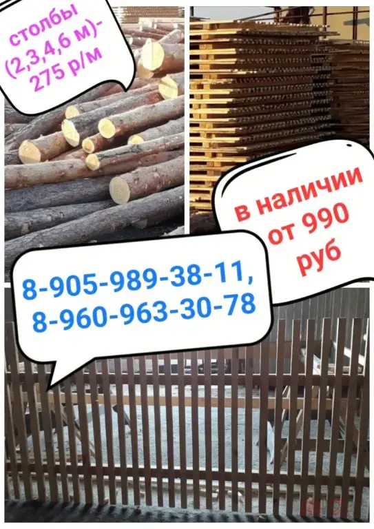 СТОЛБЫ ДЛИНА 2, 3, 4, 6 МЕТРОВ. 275 РУБ ЗА ПОГОННЫЙ МЕТР
